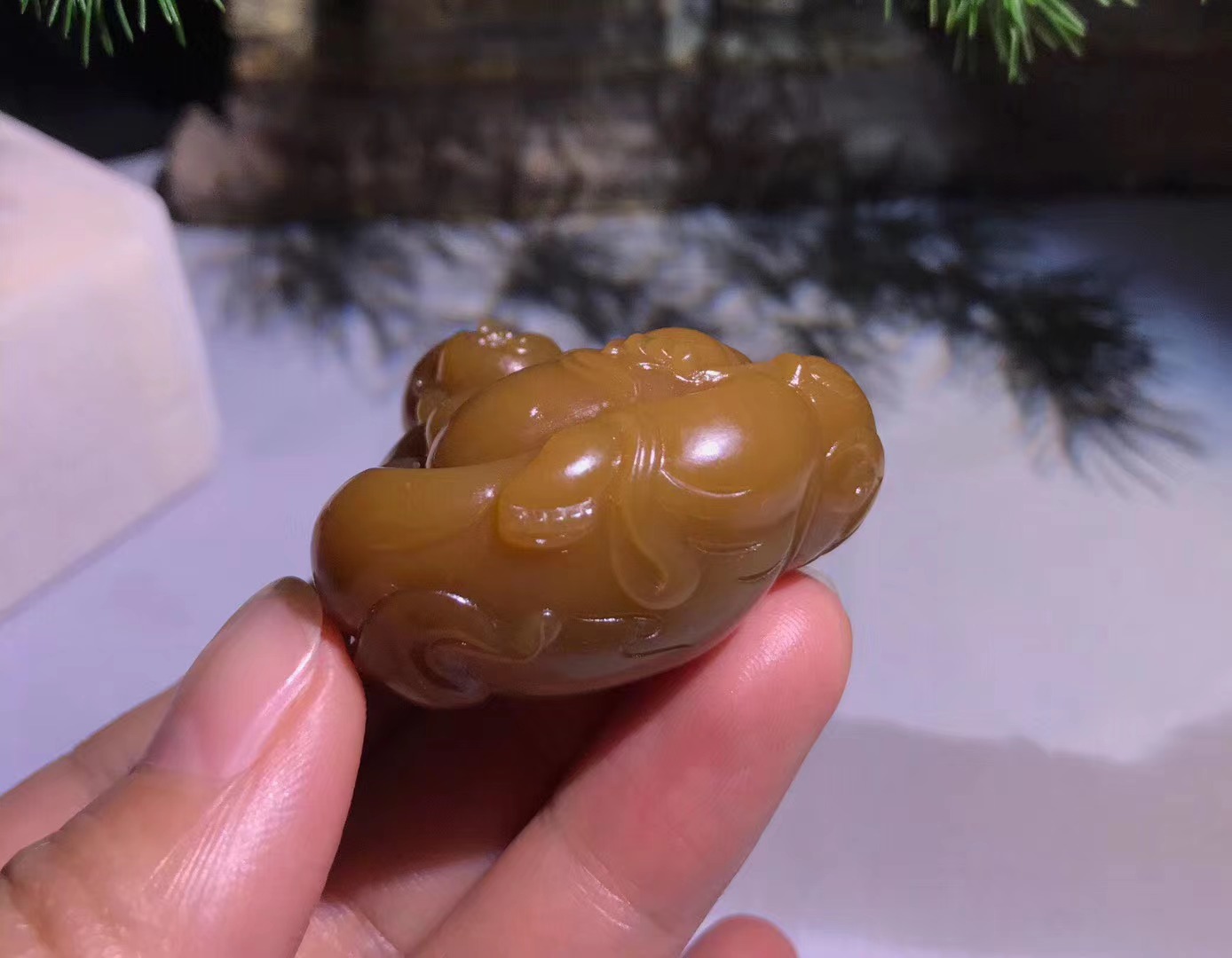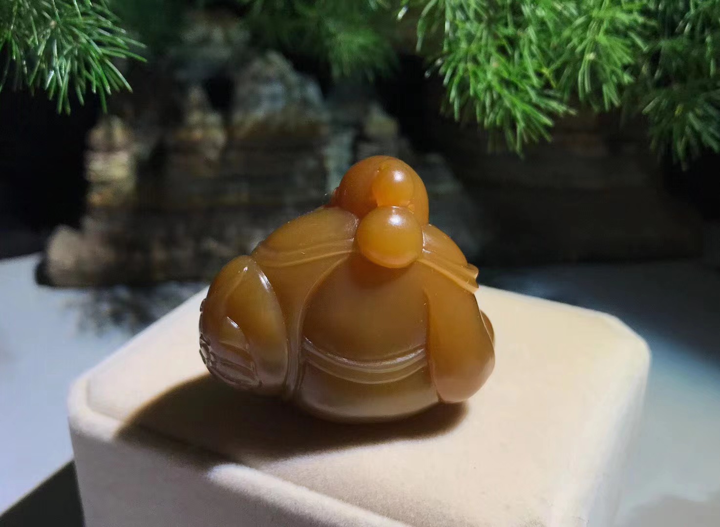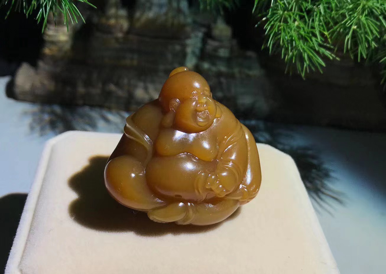 新疆和田玉且末糖玉佛引福来挂件 质地细腻 油份足 线条流畅 精雕弥勒大耳双垂 面容中带着吉祥 和谐喜庆 雕刻十分传神 寓意平安康宁 富贵如意 財福双至 大肚能容