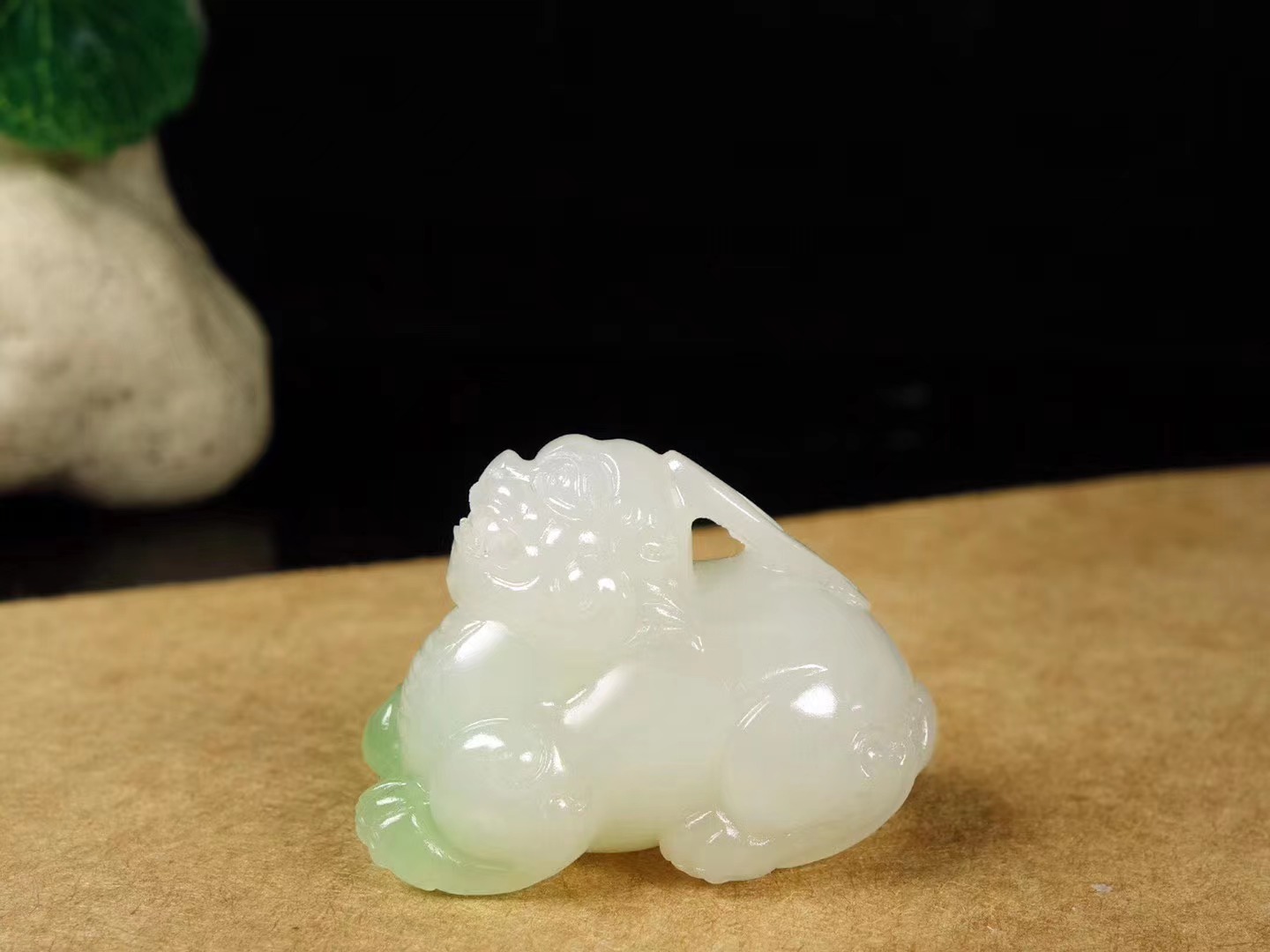 和田玉带翠白玉山料貔貅挂件 质地细腻 油份足 貔貅是仁慈和吉祥的象征 寓意招福纳财